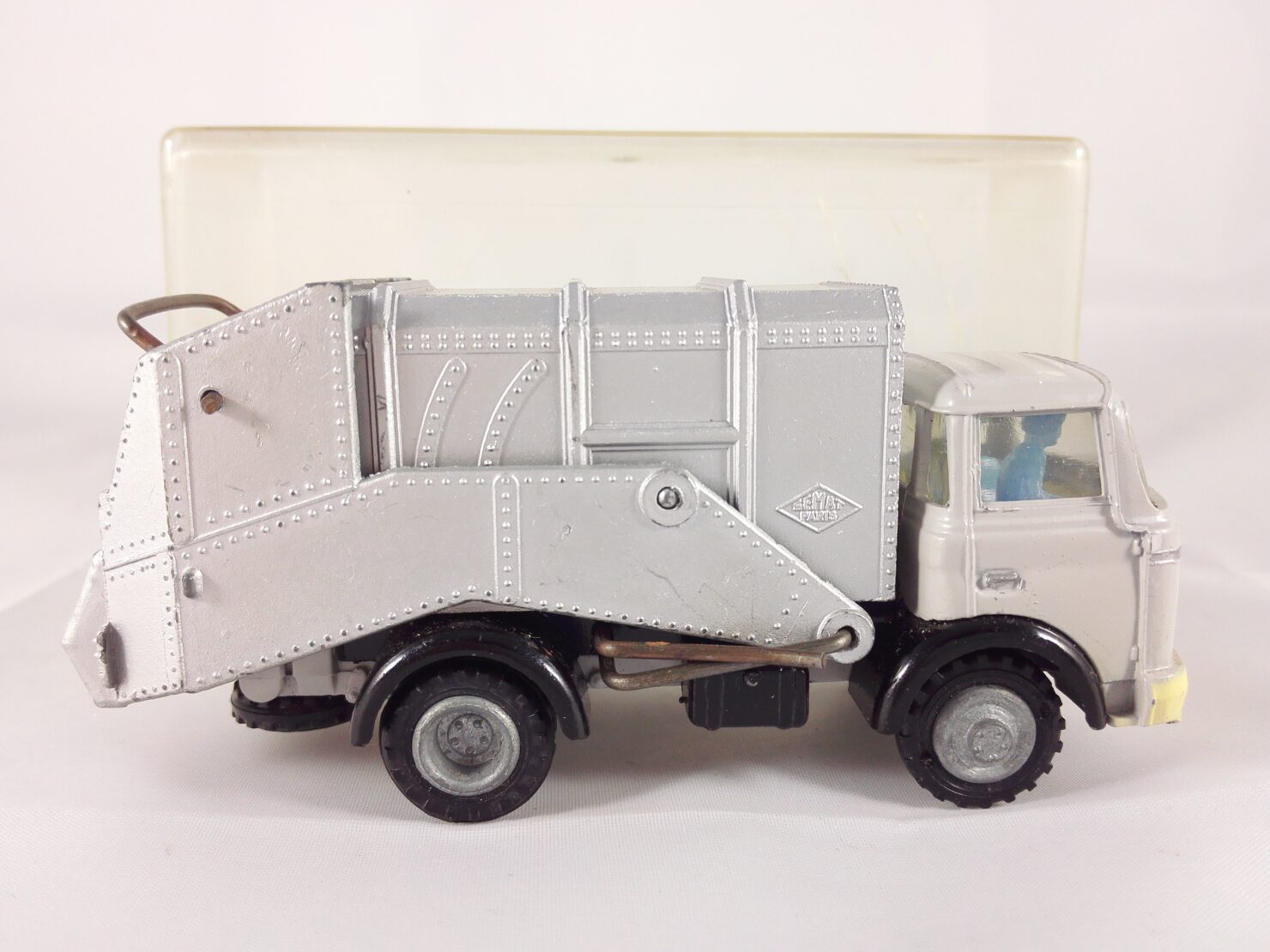 Cette voiture miniature est un moulage en zamak avec un châssis en tôle de couleur noire. Elle présente comme caractéristiques des pneus en caoutchouc.